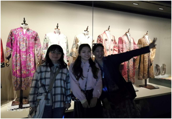 留学生在服饰展区的合影