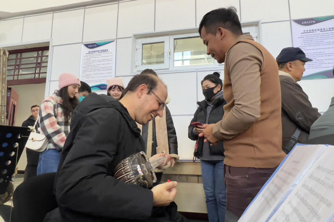 11月21日,“幸福就在这里”参访团走进新疆艺术学院的实践教学排练剧场、民族民间舞教学课堂、万桐书木卡姆文献馆和中华传统乐器馆等场地,从各自不同角度观察、感受新疆民族民间传统艺术的教学与传承取得的丰硕成果。